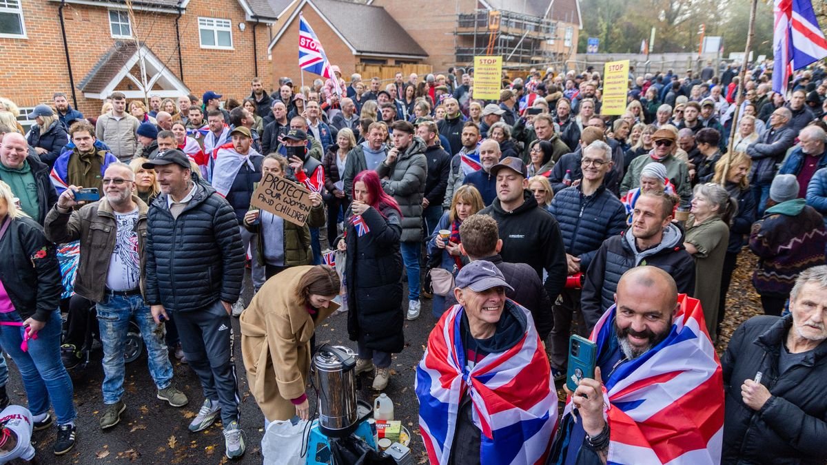 Residents of Crowborough voiced their concerns and even installed panic alarms in their homes upon learning about the plan to repurpose the military training camp located on the town’s outskirts. They organized a protest along the main high street, carrying banners with messages like “#ProtectOurElderly” and “Our Children’s freedom gone, so they can have theirs.”
